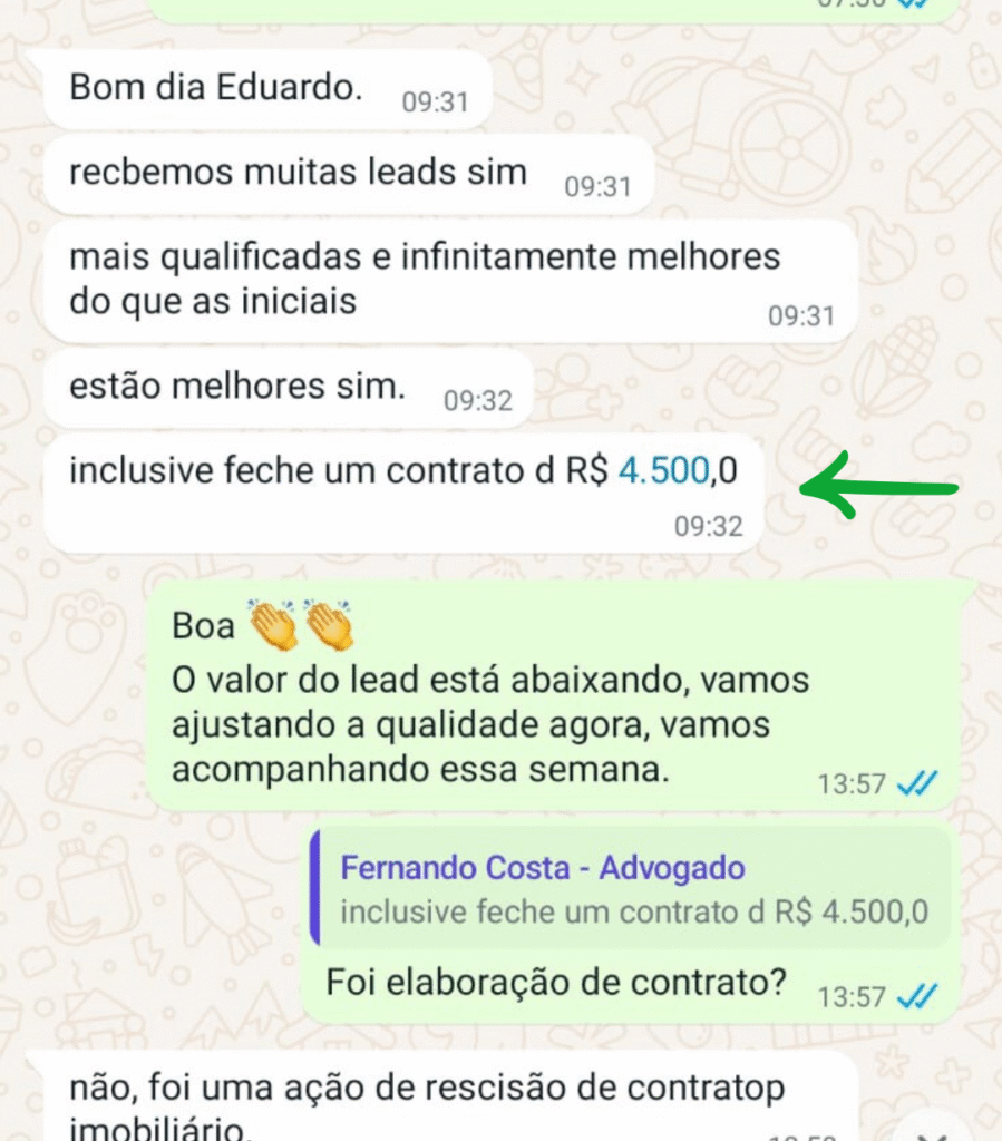 Um único lead qualificado pagou todo o investimento. O resto é lucro.
